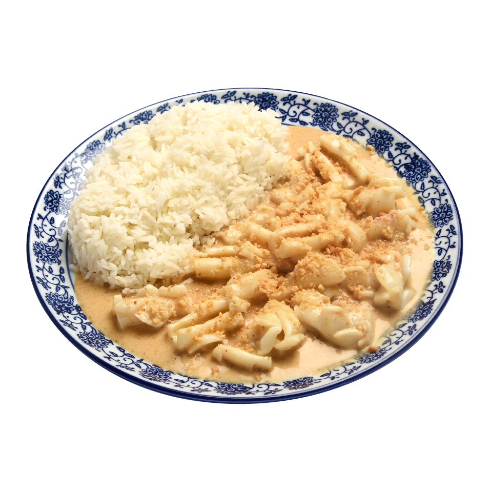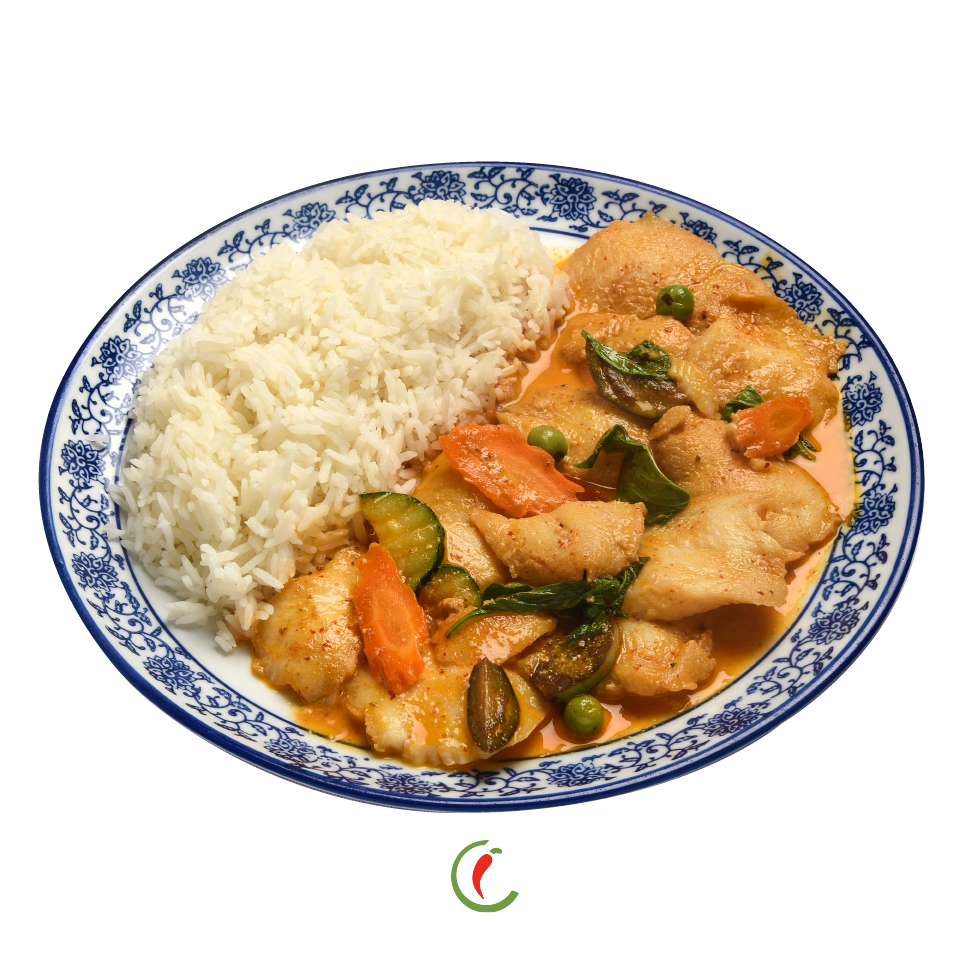 Calamar/Poisson Servi avec du riz parfuméRiz cantonais ou nouilles aux légumes : +2CHF Calamar au curry massaman – 14CHF Calamar au curry rouge - 14CHF Calamar au curry vert - 14CHF Calamar sauté au basilic et piment – 14CHF Calamar sauté au poivre vert - 14CHF Poisson à la citronnelle - 14CHF Poisson au curry rouge – 14CHF Poisson au curry vert - 14CHF Retour au menu